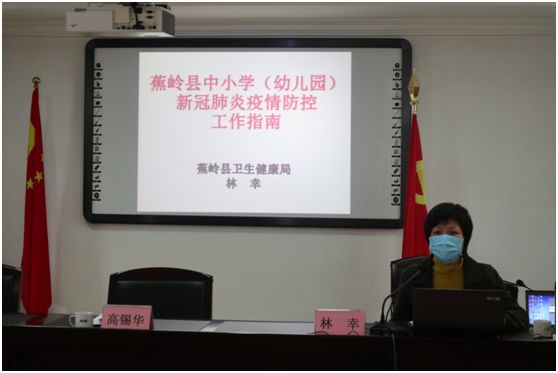 为做好新冠肺炎疫情防控知识普及,提升各校园的防控能力,消除师生对疫情的恐慌心理,3月5日,县教育局邀请县红十字会办公室林幸主任作《新冠肺炎防控和卫生清洁消毒工作指南》专业培训讲座。县教育局高锡华副局长主持会议并作工作部署,联校、各中小学、幼儿园(含民办幼儿园)、少年宫及特殊教育学校校(园)长、分管副校(园)长、专职或兼职校医共200多人通过视频参加了培训。