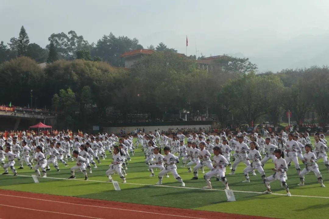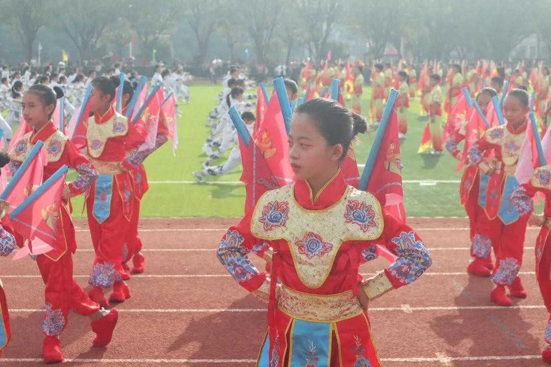 鼓乐齐奏,彩旗飘扬,英姿勃发的国旗队、彩旗队、锣鼓队、各中小学代表队及裁判员依次入场。开幕仪式正式开始,全体肃立,奏唱国歌,裁判员代表、运动员代表宣誓。随后进行太极操、足球操、啦啦操、武术操表演,刚劲与柔美、节奏与动感,汇合成一道视觉盛宴,展现了我县中小学生积极向上、活泼健康的精神风貌。