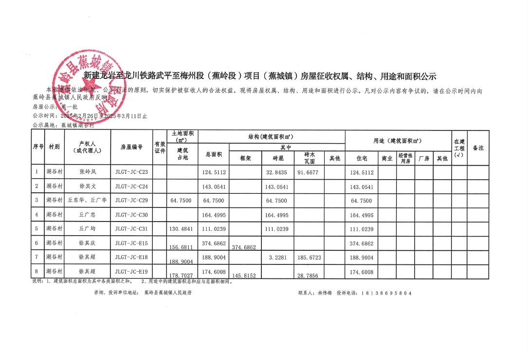 (湖谷村)新建龙岩至龙川铁路武平至梅州段(蕉岭段)项目(蕉城镇)房屋征收权属、结构、用途和面积公示.pdf