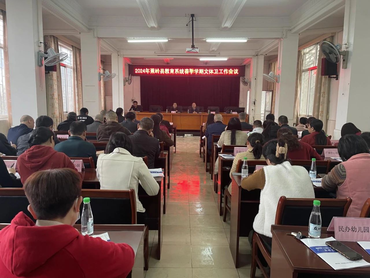 文体卫股负责人曾文正全面回顾2023年秋季学期我县文体卫工作情况和取得的成绩,分析工作存在不足,并对2024年文体卫春季体艺、食品安全、传染病防护、国防教育、近视防控、垃圾分类等重点工作进行了具体部署。他要求各学校要继续加强体艺工作,提高学生的身体素质和艺术素养;加强国防教育和近视防控工作,提高学生的国防意识和健康意识;加强垃圾分类宣传教育,提高学生的环保意识;加强学校卫生和食品安全管理,确保师生饮食安全。
