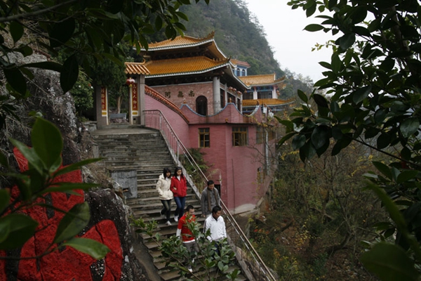 高台庵位于长潭旅游区内800米高的天马山半山腰这块平地,平地宽约30多平方米,因此,看上去整座山像一高台,高台庵因此而得名,有“南方悬空寺”之称。