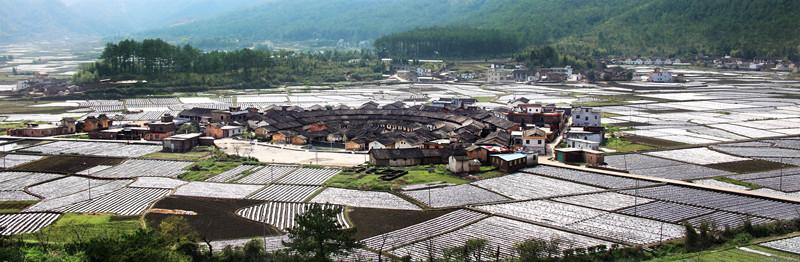 粟坝罗氏大围屋,位于蕉岭北面广福镇粟坝村,始建于清嘉庆二十年(1815),开始为方形主房,下中置二进院落四合院或宗祠,后围第一排围龙屋。1943年建第二排围龙,1954年建第三排围拢。围屋正中为宗祠,为逢年过节祭祀祖先及平时婚丧喜庆的场所。左右两房置两栋横屋。房屋之间有廊道相通,外面用门楼围封为居民进出。围居的墙用粘土夯筑,屋内有300多个房间。围屋之间的天井,晴天晒物,雨天排水,为采光、通风之用。正门口有一长方形禾坪,坪前有一半月形的池塘,既可养鱼又可蓄水,防旱防火,不失为污水自然净化池。
