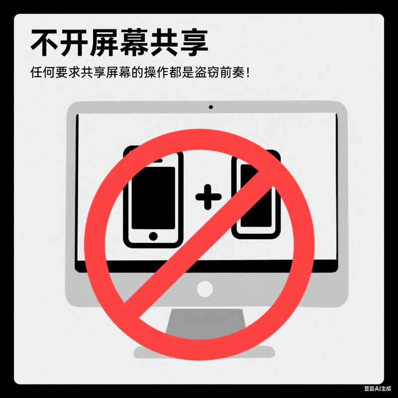 以"指导操作"为由要求屏幕共享,实时监控支付过程,以话术诱导转账。