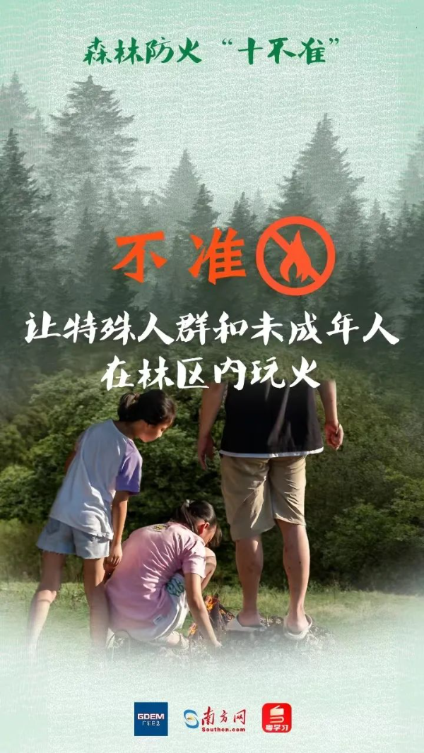 《广东省森林防火条例》规定,我省实行全年森林防火,在森林防火区野外禁止上坟烧纸、烧香点烛,禁止燃放烟花爆竹、携带易燃易爆物品;禁止吸烟、野炊、烧烤、烧蜂、熏蛇鼠;禁止烧山炼山、烧杂、烧灰积肥、烧荒烧炭或烧田基草、果园草等易引起森林火灾的用火行为。因特殊情况确需野外用火的,应经当地政府批准,落实防火措施,严防失火。
