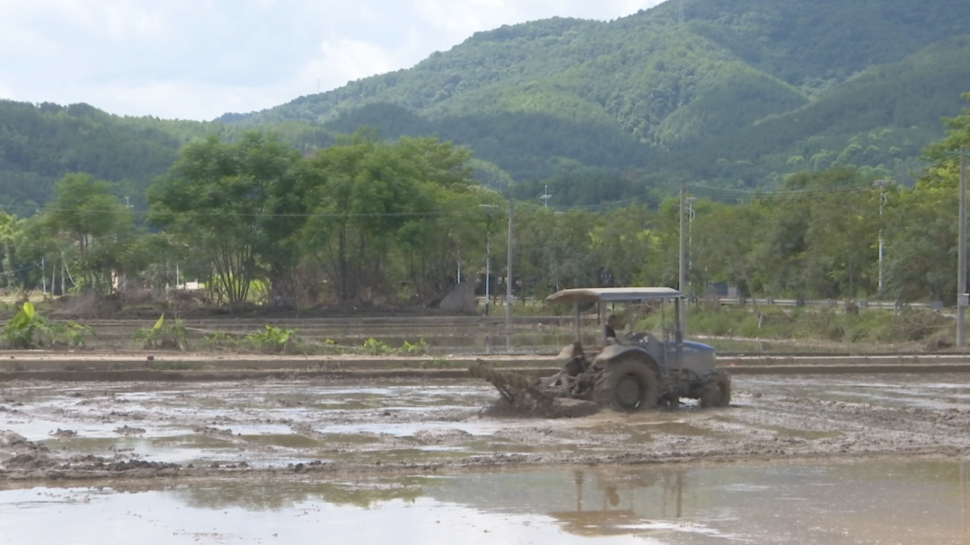 而在新铺镇矮岭村也是一派繁忙的复耕复种场景。旋耕机来回穿梭,农户们手持农业器械平整田地,为接下来的水稻插秧做足准备。据介绍,该片农田今年集约给制种公司进行水稻育种,此次洪水侵袭,冲毁了平整的田地和秧苗。洪水消退后,合作社便在镇村帮助下积极开展复耕复种,尽可能减少损失。