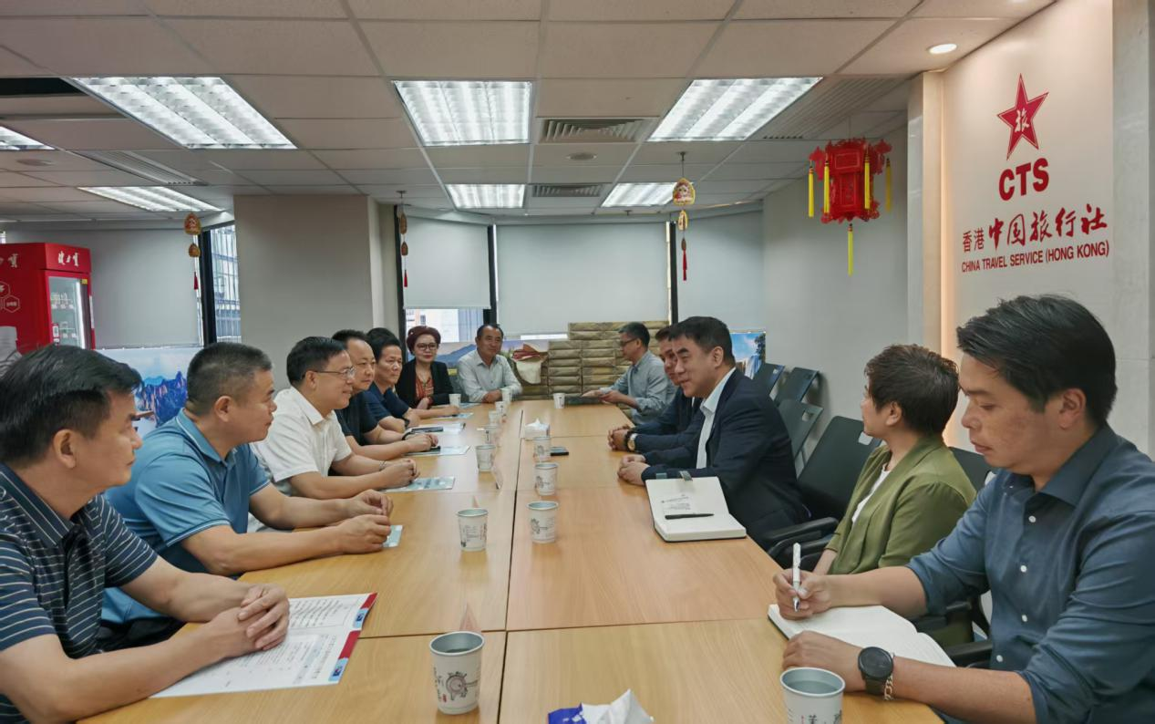 刘裕君一行先后走访考察了香港中国旅游协会、香港中国旅行社有限公司,双方共同观看了蕉岭、长潭宣传片,就农文旅融合发展、新型城镇化、长潭旅游开发等话题展开深入交流,探讨合作契机。刘裕君详细介绍了蕉岭优越的投资环境、秀美的自然风光和深厚的文化底蕴。刘裕君表示,当前蕉岭正锚定打造“蕉岭版丽江”目标,依托资源禀赋,统筹以县城为重要载体的新型城镇化和整县推进农文旅融合发展“双试点”,将美丽元素串珠成链、连线成片,使之成为“建筑师的天堂,工程师的战场”。他诚挚邀请协会、企业及香港各界朋友来蕉岭实地考察,饱览山水人文,领略寿乡之美。双方一致认为蕉岭与香港文旅市场存在广阔的合作空间,希望以此次考察为契机,加强深层次交流,共享机遇、共襄文旅、共创未来。