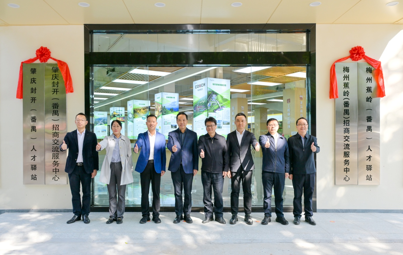 番禺区委书记黄彪,区委常委、区委办主任石巍;蕉岭县委书记、蕉华工业园区党委书记刘鸿涛,县委副书记、县长、蕉华工业园区管委会主任刘裕君,副县长周锐明等两地领导共同出席活动,并为“梅州蕉岭(番禺)招商交流服务中心”“梅州蕉岭(番禺)人才驿站”揭牌。揭牌仪式后,与会领导共同参观了该中心的内部设施和展陈布局,并就下一步运营合作进行了深入的交流。