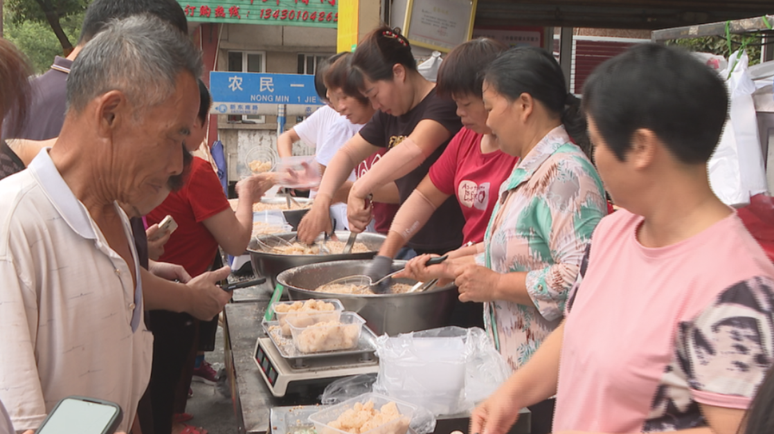 今早,记者在县城走访发现,随着立秋节气的到来,糍粑销量迎来了一波猛增。主营糍粑的店铺前都排起了长队。店主们一边麻利地用糯米制作着新鲜糍粑,一边招呼着前来购买的顾客。混合着白砂糖、花生碎的香味糍粑在市场里供不应求。