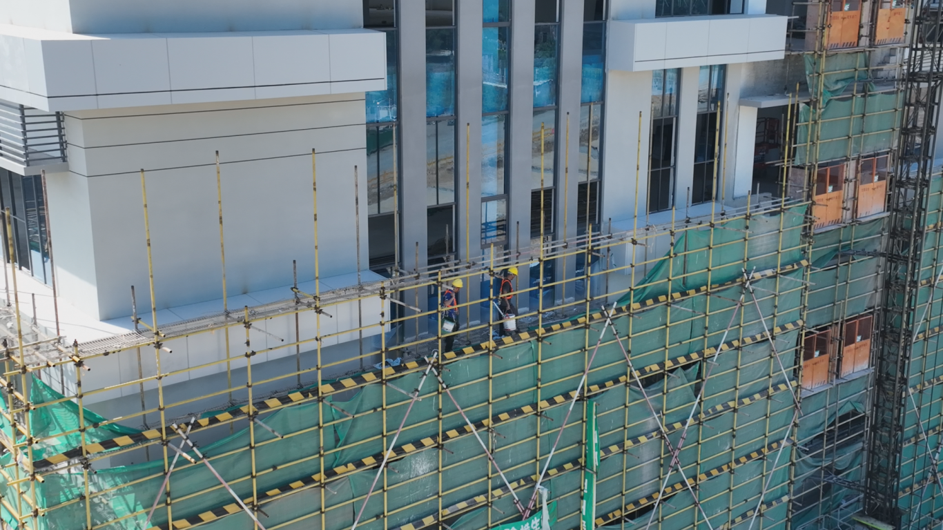 广东省源天工程有限公司蕉华工业园区北部发展区二期项目负责人 李惠华:项目的主要建设内容包括6栋4层的标准厂房和1栋16层的宿舍综合楼,及室外园林配套建设工程。截至目前,项目主体结构全部完成封顶,外脚手架基本拆除完成,室内外装饰装修也已接近尾声,室外园林配套建设也在同步有序推进中。