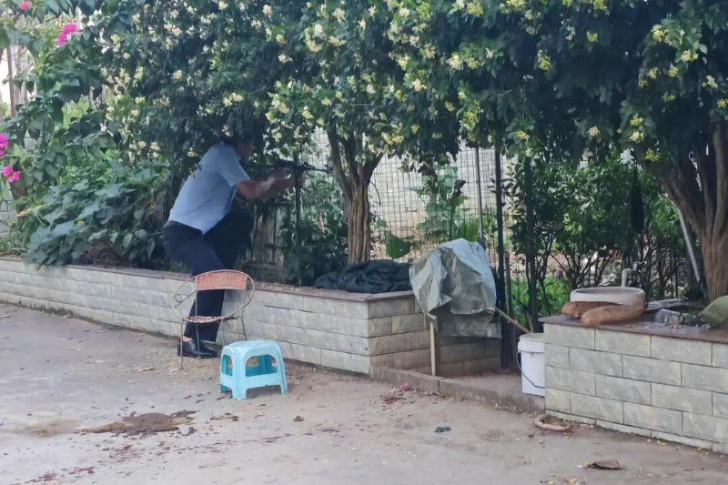 在确认周围环境安全,做好充分准备后,民警寻找到最佳射击位置,果断举枪、瞄准、射击。随着“砰、砰”两声枪响,疯牛应声倒地。