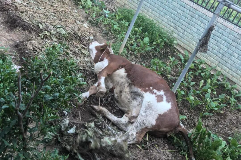 到达现场后,民警发现疯牛仍在一群众住家门口空坪,并不停地撞击周边物品。为防止疯牛跑出来伤人,民警及时将大门关闭,对现场情况进行综合评定,制定了处置方案,在征得牛主人的同意后,决定立即开枪将其击毙。