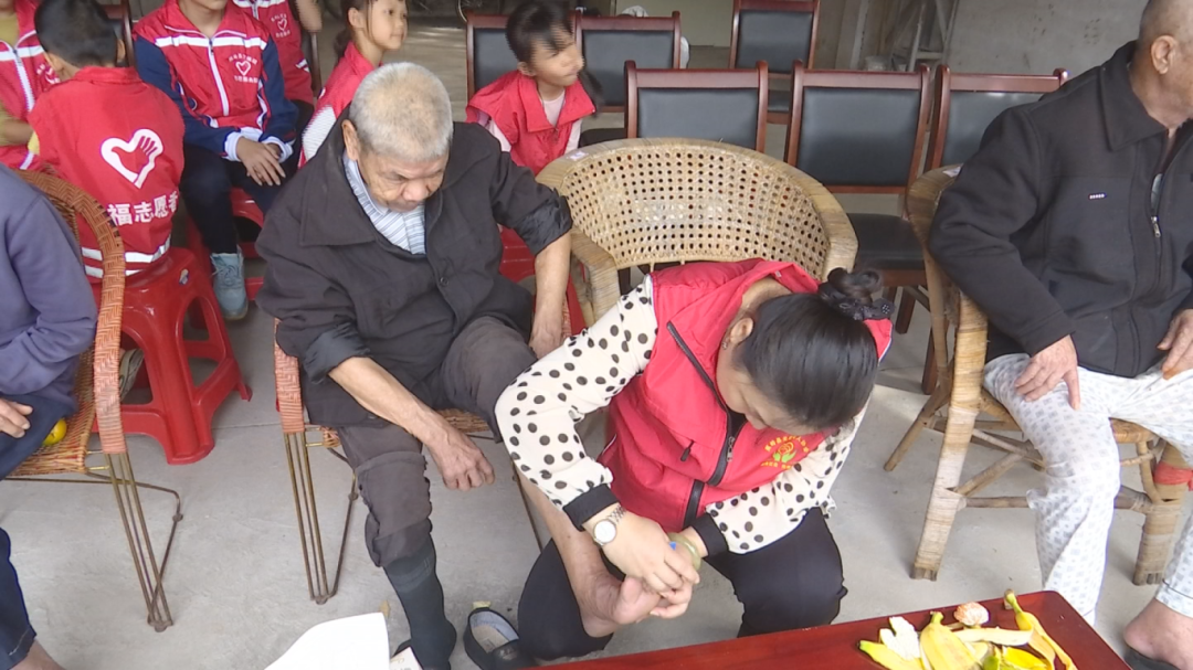 活动现场暖意融融。志愿者们精心编排的文艺节目轮番上演,欢快的广场舞、经典的客家山歌引得老人们纷纷拍手叫好,不少长者跟着旋律轻声哼唱;另一组志愿者则围坐老人身旁,耐心修剪指甲、精心梳理发丝,细致入微的关怀让老人们笑容满面。随后,志愿者们拿起扫帚、抹布,穿梭于各房间打扫除尘,将门窗、桌椅擦拭得一尘不染,让居住环境更显整洁舒心。临近正午,志愿者们支起厨具,精心烹饪爱心午餐,饭菜香气弥漫院落。用餐时,大家围坐一桌,陪老人们闲话家常、畅谈近况,敬老院里处处洋溢着温馨和睦的氛围。