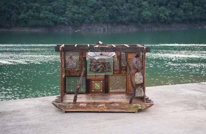 值得一提的是,本次艺术季中还涌现出跨地域文化交融的精彩案例。在长潭水库边,一艘布满图腾的古船安静停泊着,走进船内,耳畔便悄然响起船夫声音、婴儿啼哭……置身其中,凝望这“岭南日月潭”的山水一色,仿佛与艺术、时空展开一场无声的对话。这是艺术家郑泽生的艺术作品《摩梭精灵》。